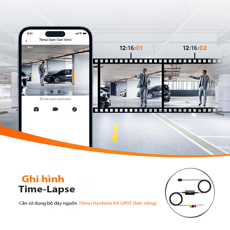 - Cơ chế hoạt động: Khi xe tắt máy, Adapter 70mai Hardwire Kit UP03 sẽ cấp nguồn liên tục cho camera, kích hoạt tính năng giám sát đỗ xe 24/7. Nếu phát hiện va chạm hay chuyển động bất thường, camera sẽ tự động ghi lại bằng chứng.